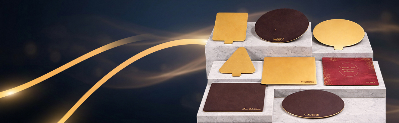Prominent & Leading Manufacturer from Mumbai, we offer M.D.F board silver foil round cake base, heart shaped cake base, mdf square base, round cake base boards, gold foil round cake base board with tab and triangle pastry board with tab.
